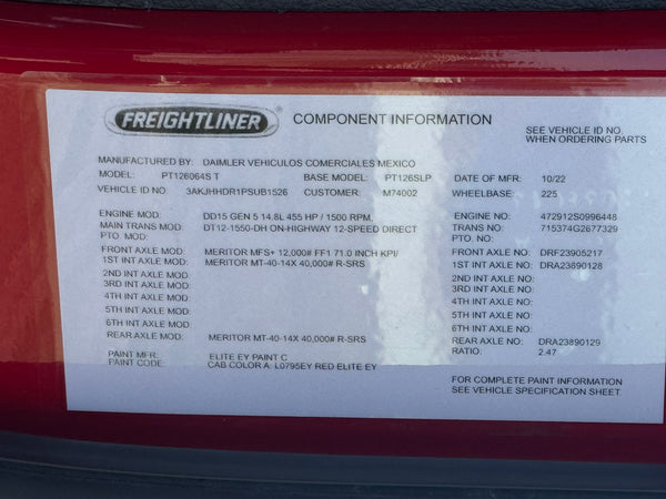2023 FREIGHTLINER CASCADIA 126, DD15, DT-12 AUTO,559k miles, APU, Driver Loft!